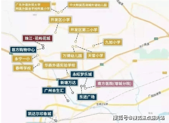 答:项目自配 9 班公立幼儿园,对口中心小学,周边 5 公里内有增城开发区小学、清华万博实验学校等多所学校,覆盖 15 年一站式教育,孩子上学便捷。
