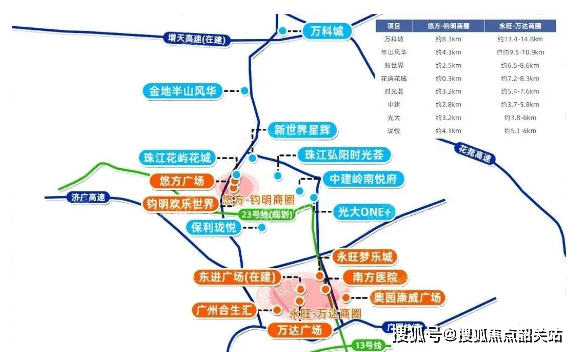 项目位于增城永宁开发区板块,交通出行优势显著。步行约 900 米即达在建新白广城轨永宁南站,通车后 1 站到新塘 TOD、3 站到天河北,30 分钟畅达珠江新城;自驾可通过周边花莞高速、增天高速、济广高速,快速通勤天河、黄埔。周边配套完善,教育上有中心小学、永新中学等多所学校;商业上楼下即悠方购物天地,5 公里内覆盖 7 大商圈;医疗上近南方医院增城分院(三甲),全方位满足日常生活需求。