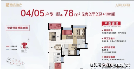项目主打 78-96㎡户型,采用 N+1 设计,同等面积多一房一卫,实用率接近 90%,空间利用率突出。其中 78㎡可打造三房两卫,满足刚需家庭基础居住需求;88-90㎡户型布局更宽敞,动静分区合理,提升居住私密性;96㎡户型空间充裕,适合三代同堂或多孩家庭。目前主推 8 栋现房(32 层,2 梯 6 户,79-96㎡),7 栋加推现房,户型选择丰富,即买即享精装品质。