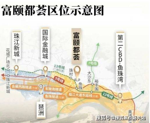 富颐都荟地处黄埔鱼珠CBD板块,位于广州第二CBD核心区,毗邻天河及珠江新城,区位价值显著。项目交通网络完善,周边主要道路包括茅岗路、广园快速路及中山大道,能够快速通达天河核心商圈、琶洲会展区及临港产业区,满足自驾通勤的高效需求。