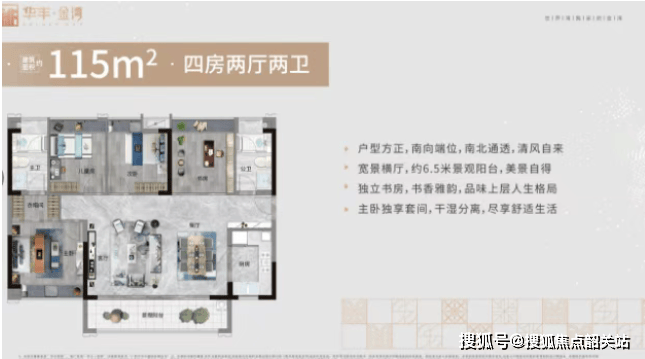 115-125㎡的四房户型是市场上的主流改善产品,也是华丰金湾的主力户型。这类户型通常采用LDK一体化设计(客餐厨一体),空间流动性强,互动性高。双套房设计(主卧+次卧带卫)满足了多代同堂家庭的居住需求。南向面宽大,采光充足,部分户型还配备了双阳台,增加了生活情趣。对于追求生活品质的家庭来说,这个面积的户型既能保证居住的舒适性,又不会造成过大的经济压力。