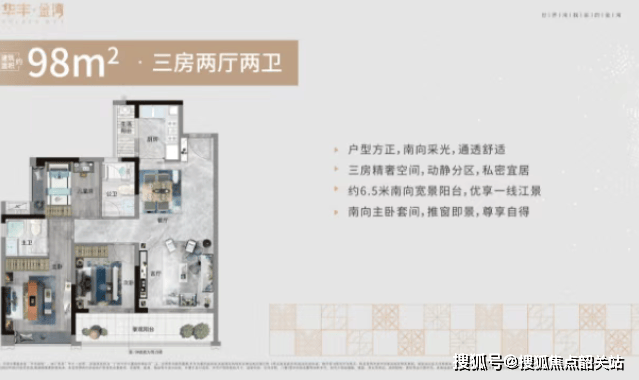 98㎡的三房户型是项目中的入门级产品,适合年轻夫妇或三口之家。虽然面积有限,但设计师通过科学的布局,最大化利用了每一寸空间。客厅连接超长景观阳台,视野开阔;主卧配备独立卫生间,私密性强;次卧和儿童房布局合理,功能分区明确。尽管部分户型在房间布局上可能存在细微调整,但整体实用性依然较强,是南沙地区难得的紧凑型高品质房源。
