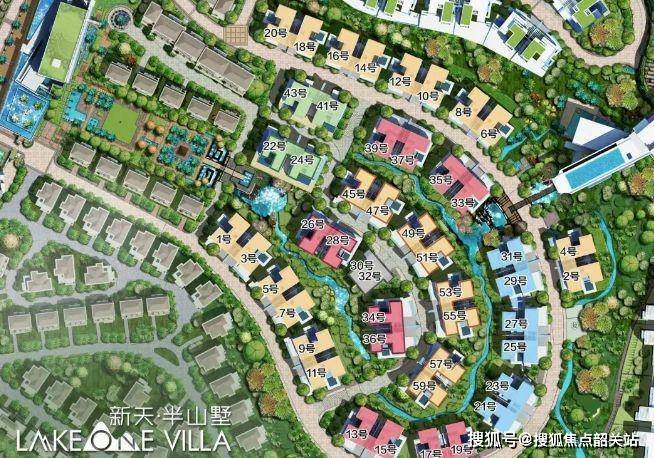 新天半山坐落于广州市白云区南湖 4A 级风景区旁,宛如一颗镶嵌在自然中的璀璨明珠,是难得的天然养生佳地。项目总占地约 23 万㎡,容积率仅 0.71,绿化率高达 41.6%,兼得云山绿意与南湖旖旎风光,为业主带来极致的居住品质享受。别墅群西倚金盘岭,东临南湖,依山体走势布局,与自然完美融合,登高可揽城市 CBD 壮阔美景。目前项目分为五个组团,不同组团各具特色,满足不同客户需求。