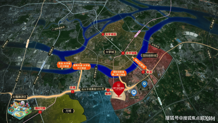 项目距离地铁7号线板桥站仅500米,步行约8分钟即可到达,两站可达万博,五站直达琶洲,无需换乘。自驾出行也非常方便,临近南大干线,能够快速转至新化快速路,并且南大干线没有红绿灯,便于快捷到达珠江新城等广州核心区域。此外,计划中的金新大道至大学城过江隧道工程将使前往大学城更加便利。
