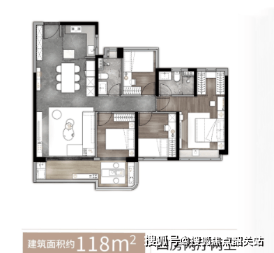 118平方米四房两厅两卫(沧澜·星野):270°环幕视野,四开间南向望江,畅享约12米拥江景观线。
