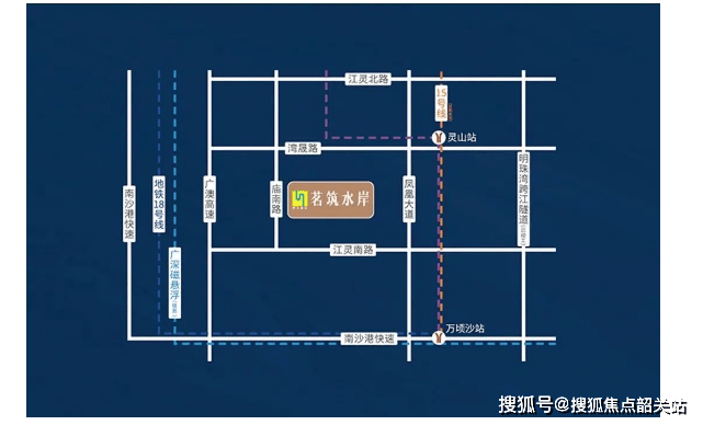 茗筑水岸位于南沙新区横沥镇灵山岛尖核心腹地,具体位置处于规划横四路南侧、庙南路东侧,地处明珠湾起步区的“门面”位置。灵山岛尖作为南沙自贸区重点打造的城市客厅,承担着粤港澳大湾区金融、科创与高端服务功能集聚的重任。项目所在区域被多条河涌环绕,形成天然生态屏障,同时又紧邻城市主干道,兼具静谧与通达双重优势。从宏观区位看,灵山岛尖北接庆盛枢纽,南连万顷沙片区,西望蕉门河中心区,东临珠江出海口,是连接广州主城区与深港的重要节点。随着南沙“半小时交通圈”加速成型,该区域正成为湾区高净值人群置业的热门选择。茗筑水岸凭借其不可复制的岛尖位置,不仅享有政策红利,更占据未来城市发展的制高点。
