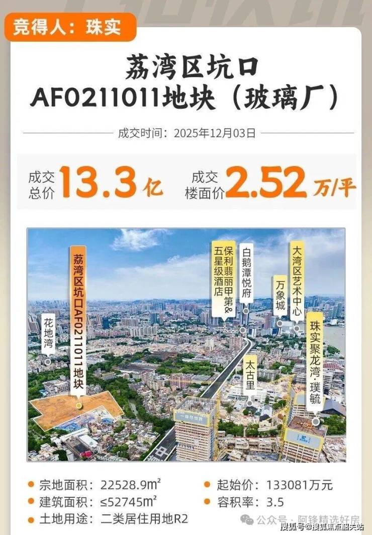 根据克而瑞2025年荔湾楼市年报,白鹅潭板块新建商品住宅成交均价5.8万元/㎡,其中90-144㎡户型成交均价6.2万元/㎡。珠实·聚龙湾壹号楼面价2.52万元/㎡,按行业常规利润率测算,预计售价区间为5.5-6.5万元/㎡,与板块均价基本持平。