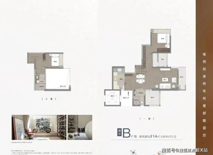而114㎡复式户型,则是项目的一大亮点。由于项目是2018年报建的,当时尚未实施“禁复式令”,因此耀胜尊府拥有的是真正的复式结构,得房率非常高。复式户型通常给人一种豪华、大气的感觉,但在耀胜尊府,复式并没有牺牲实用性。相反,通过合理的动线设计和空间分割,复式户型既保留了挑空的震撼感,又兼顾了日常生活的便利性。