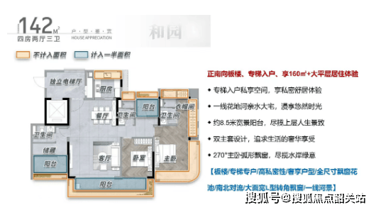 南北双景观——北瞰河景,南览园林,改善属性突出。