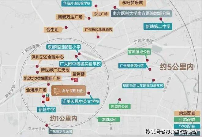 5公里享三甲医院——南方医院医院增城分院、广东省水电医院等;