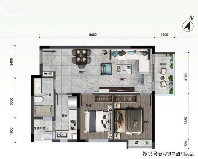 73㎡两房两厅一卫:对于刚需购房者或是小家庭而言,这款户型是理想之选。整体布局紧凑合理,空间利用率高。客厅连接观景阳台,增加空间通透感的同时,可饱览园林或周边自然景观。卧室温馨舒适,保证了居住的私密性。卫生间干湿分离,提高使用效率。厨房设计虽小巧,但功能齐全,满足日常烹饪需求。