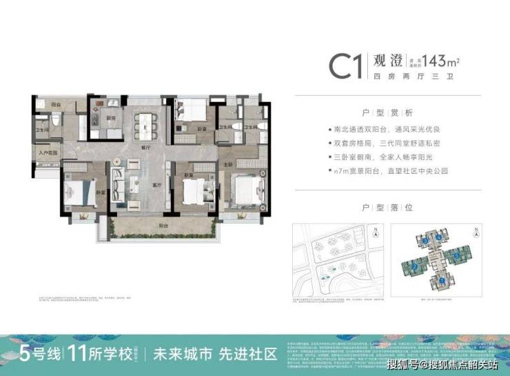产品方面,项目在售组团包括阅海、观澄和中央公园,户型涵盖约75至143平方米的三至四房,适配刚需与改善型家庭。其中,中央公园组团主打高实用率产品,空间设计合理,得房率表现优异,居住舒适度较高。户型普遍采用南北通透、客餐厨一体化设计,部分单位配备宽景阳台,提升采光与通风效果。作为现楼或准现楼销售,购房者可直观了解房屋品质与社区环境,降低等待风险,增强购房信心。