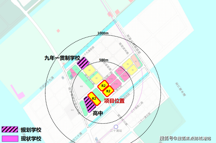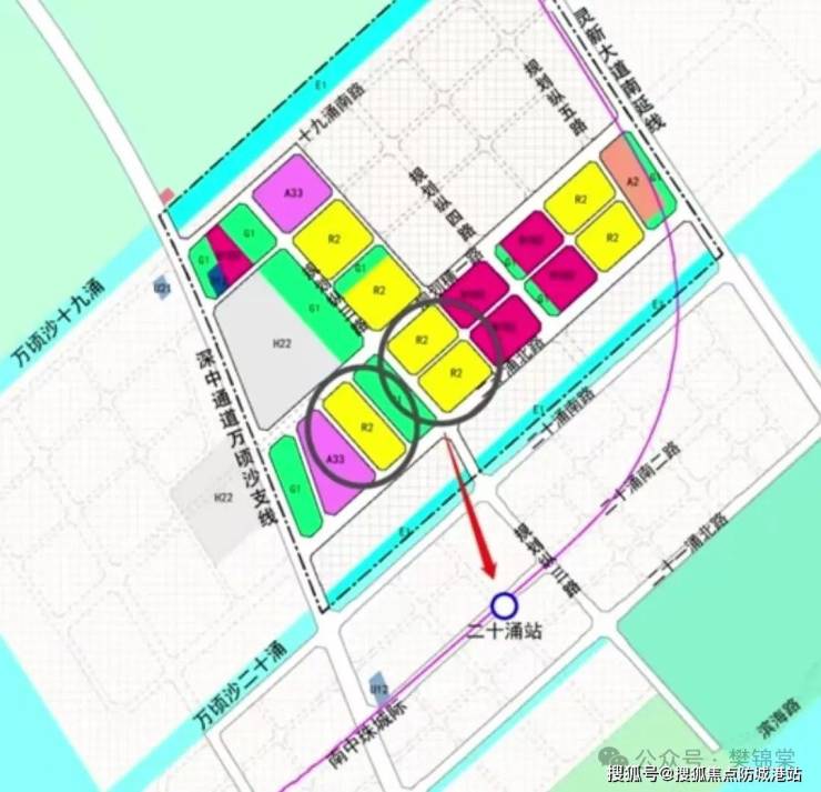 万顷沙20涌以北、19涌以南片区的控规图,是一个有地铁有学校有商业有公园绿地有文化设施的未来社区。