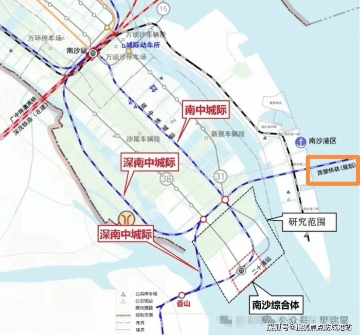 该枢纽站配合京九铁路南延线、南中城际等,已有南中高速对接深中通道,后续还有穗深通道连接深莞中。万顷沙的南沙枢纽站规模庞大、交通系统完善。