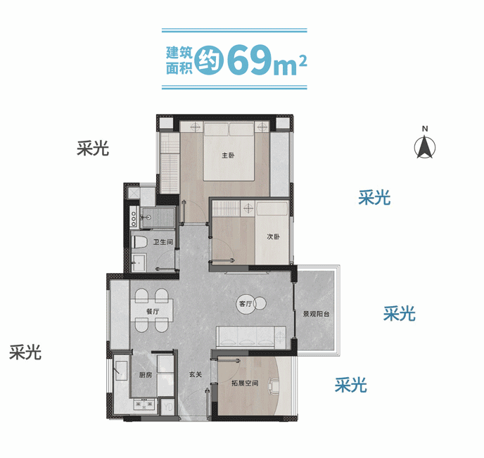 主力户型集中在69–93㎡区间,普遍采用“N+1”灵活空间设计。以83㎡三房为例,主卧带飘窗,次卧与多功能房分列客厅两侧,后者可作儿童房、书房或客房。阳台进深充足,多数户型阳台与客厅连通,视觉上拉伸了公共区域尺度。根据现场样板间实测,这类户型的实际使用面积比常规产品高出不少,主要得益于政策允许下的半开敞空间优化——比如设备平台改造、阳台计容规则调整等,使得得房率表现突出。对于预算有限但又希望功能齐全的家庭,这种“小而能变”的格局很实用。