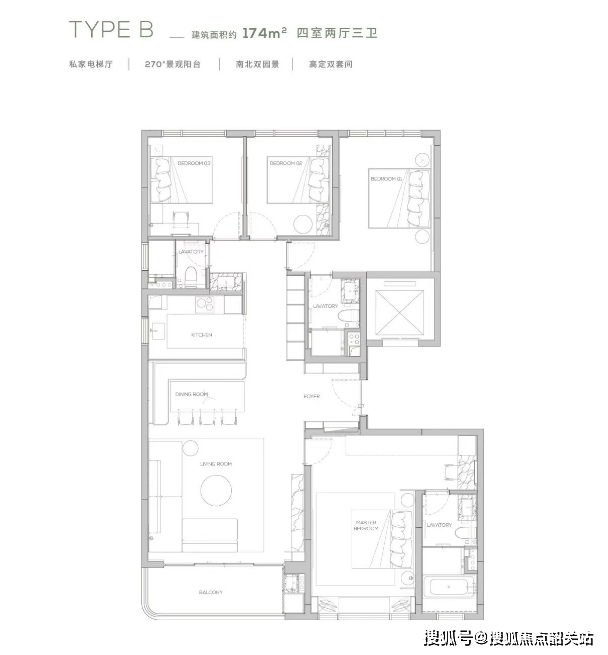 合生·缦云的所有楼栋均为16-17层的纯板式小高层设计,专梯专户的设计确保了住户的隐私性和舒适度。建筑外观采用轻质铝板幕墙搭配云翼曲线造型,既美观又实用。特别值得一提的是弧形阳台的设计,保留了完整的观景面,使每户都能享受到270°环幕包裹的视野。这种创新的空间美学设计,不仅提升了居住体验,也让建筑更好地融入周围环境,展现出独特的美感。