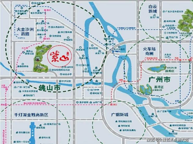 保利紫山项目位居广佛两大都市圈,周边高速/城市主干道环绕、规划中佛山地铁/有轨电车构成立体交通路网。