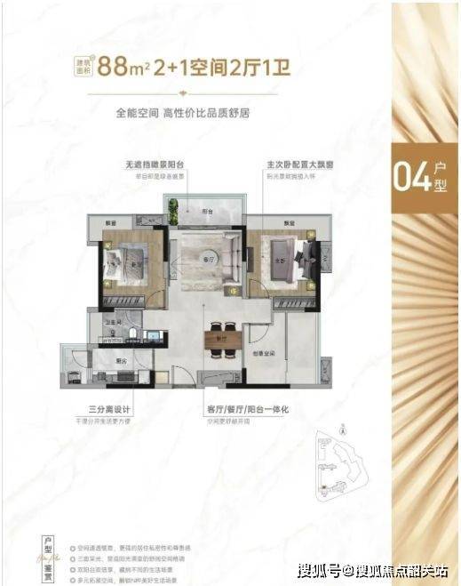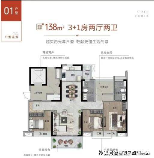 90%以上户型为纯南向板楼设计,南北通透,客厅、卧室及餐厅动线合理。主力户型88-122平方米三至四房设计,大面宽短进深,空间利用率高,部分户型配置观景阳台、步入式衣帽间,满足家庭日常生活及收纳需求。