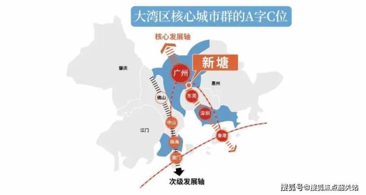 新塘,地处广州东部,南靠东莞,紧邻深圳,处于穗莞深三城交汇的“金三角”地带,被誉为粤港澳大湾区的"A字顶点”。这一独特的地理位置,使得新塘天然具备了承接广深两大一线城市产业外溢和人口疏解的优势。随着粤港澳大湾区建设的深入推进,新塘作为连接广州中心城区与深圳、东莞的重要枢纽,其交通通达性和经济辐射力日益增强。