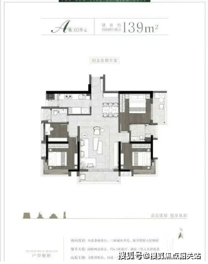公园前君熙府户型设计注重居住体验,采用了LDKG一体化设计理念,使得家庭交流更加无界,每个房间都拥有宽敞的空间和大飘窗,提升了居住的舒适感。尽管大部分户型东西朝向,南向户型仅有1户,但通过精心设计,最大化利用了空间,确保了室内的采光和通风效果。值得注意的是,由于建筑年代较早,部分户型使用率不足80%,这在当前市场中略显劣势。