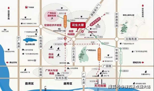 路网通达性:通过广从一路南行,接驳白云大道北,约25分钟可达白云新城;通过华南快速干线,约30分钟可抵达珠江新城。