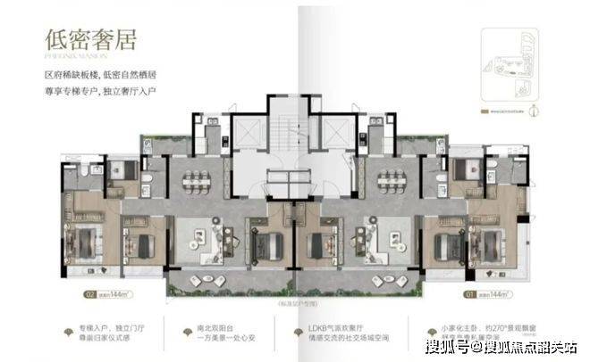 户型设计很有亮点。主力户型 108㎡、128㎡、144㎡,全是四房。108㎡做到 3 + 1 房两厅两卫,南向四开间,约 6.3 米双面宽阳台,使用率约 100% 。128㎡四房两厅两卫,南向四开间,约 7.5 米双面宽阳台,同样约 100% 使用率。144㎡四房两厅两卫,私梯入户,还有约 8.5㎡独立门庭,约 8.5m 南向景观阳台加北向生活阳台,南向四开间,实用率也约 100%。得房率这么高,在市场上可不多见,性价比超高。
