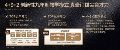 对于广州改善家庭而言,稳定优质的全龄教育资源,是置业决策中的核心考量要素,也是核心资产长期保值的关键支撑,越秀·万博和臻深刻洞察菁英教育需求,打造板块顶阶教育天团,落地已实景开学的省级公立九年一贯制配套,构建家门口一站式菁英成长体系,为孩子成长保驾护航。项目内部高标准配建规模化教育用地,规划54班优质小学与36班初级中学,完整覆盖九年义务教育全周期,硬件建设标准、校园空间规划、功能场馆配置均对标广州一流公立名校规格,校园环境开阔舒适,教学设施现代化、智能化全面升级,满足新时代素质教育多元需求。
