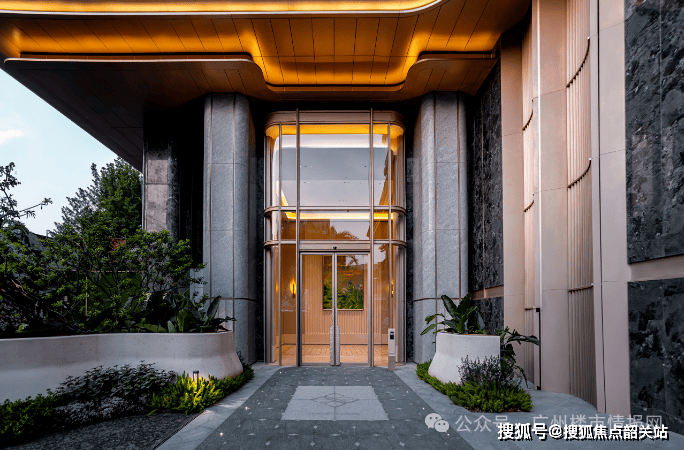 第二重| 约9.5米奢石入户大堂,看齐全广州10万+豪宅标准。底层立柱采用香格里灰石材,正门采用加纳白石材,地面采用了高级的拼花铺贴技术,提取黄边艺术公园内的睡莲形态,为每一位业主营造出充满艺术格调与尊贵的归家体验。