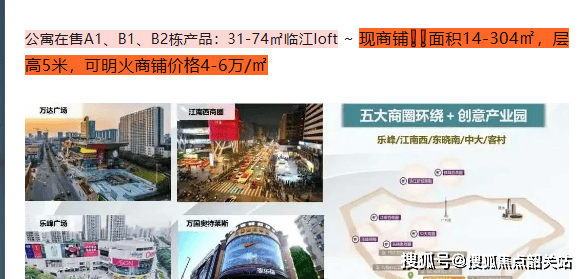 商铺的面积段和价格是多少?答:商铺面积段为 14-304㎡,层高 5 米可明火,单价 4-6 万 /㎡(具体一铺一价),均为现铺销售。