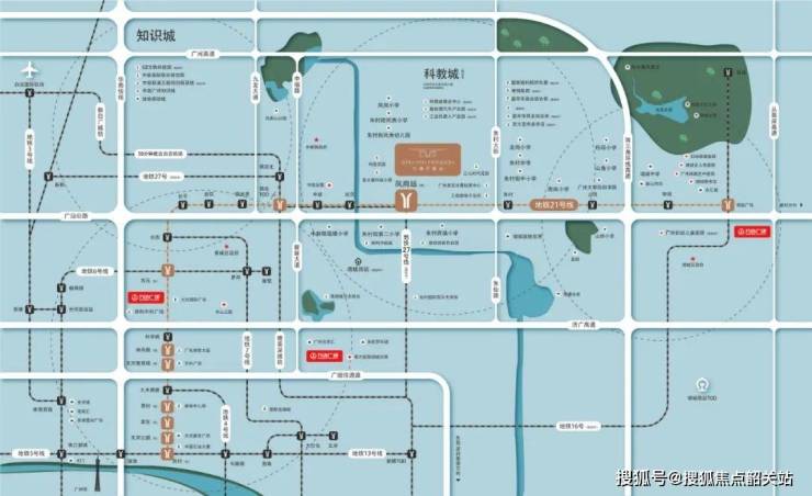 中建凤榕台项目位于广州科教城,距离21号线凤岗站约600米,步行仅需约10分钟,并且凤岗站为快线站,可快速通达科学城、珠江新城等核心区域,交通相对便利。