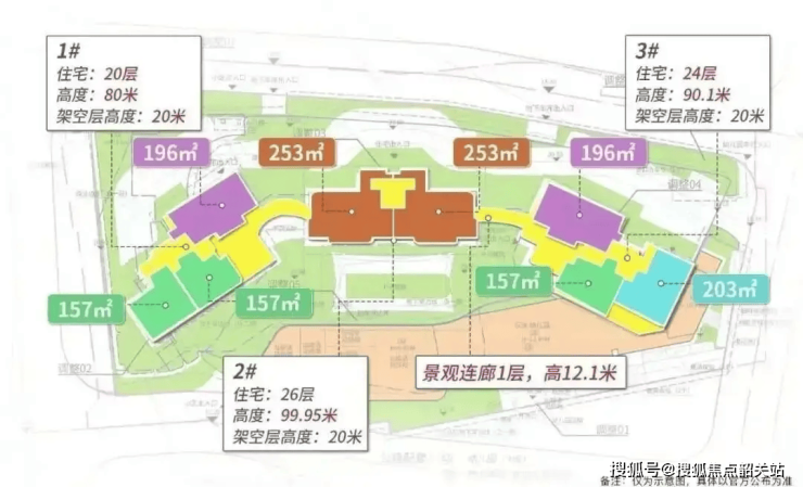 目由三栋高层住宅组成,总户数166套,容积率控制在合理区间。建筑外立面采用现代简约风格,大量运用玻璃幕墙与金属线条,转角处统一设计为270°飘窗结构,不仅强化了视觉延展感,也让每户的景观视野更为开阔。值得一提的是,整个社区地基整体抬高约30米,形成三层立体归家动线——地面层用于车行与后勤,首层架空打造园林活动空间,住户从二层开始入户。这种设计有效实现了人车分流,也提升了低楼层住户的私密性与观景体验。