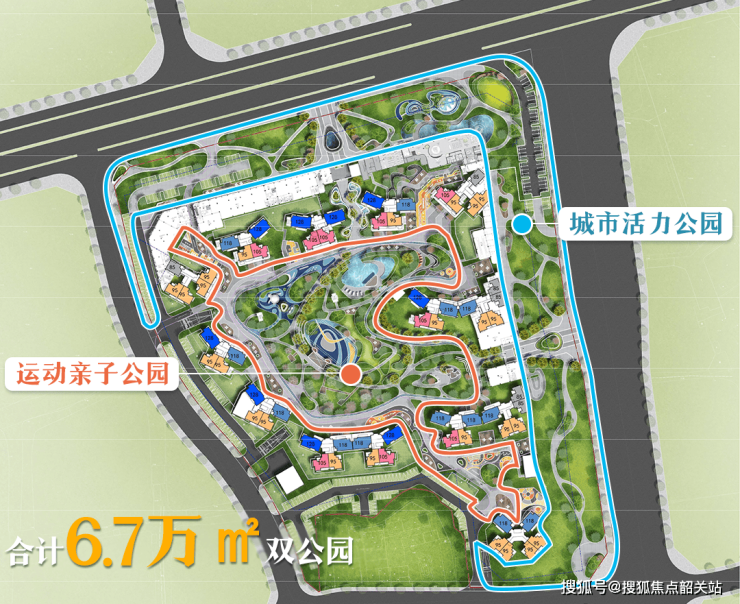 该项目的一大亮点就是其内外双公园的设计理念。社区内规划了约5万㎡运动亲子公园,而社区外则是约1.7万㎡城市活力公园,仿佛房子就坐落在公园之中。住户可以轻松享受到绿意盎然的生活环境,推窗即见满目的翠绿与四季美景,下楼便能沿着公园散步或晨练,呼吸新鲜空气,享受健康生活方式。