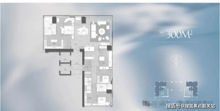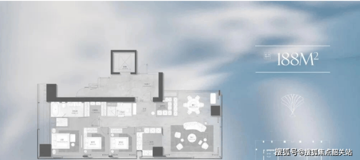 188㎡起步户型:适合高端改善或小型企业总部,三至四房布局,南北通透,江景视野开阔;