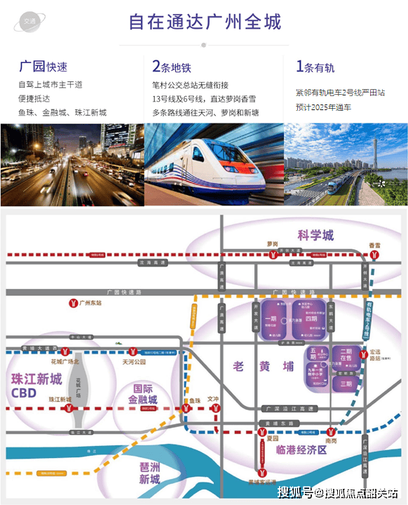 自驾方面,紧邻黄埔大道与广园快速路 ,约 30 分钟可达珠江新城 ,约 20 分钟直达金融城 ,约 10 分钟抵达鱼珠 CBD ,轻松融入广州主城区半小时生活圈 。对于大湾区通勤人群 ,通过广深高速、济广高速等交通动脉 ,1 小时内可抵达佛山、东莞、深圳等城市核心区 ,实现大湾区一小时生活圈。