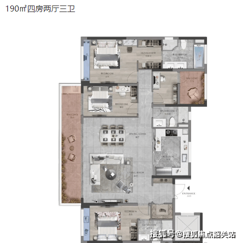168㎡四房两厅三卫:大面积户型,豪华装修,尽显尊贵。
