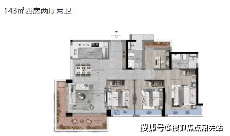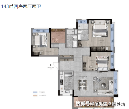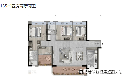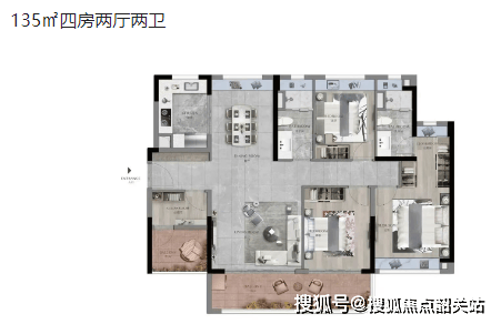 135㎡四房两厅两卫:四居室设计,适合大家庭居住。