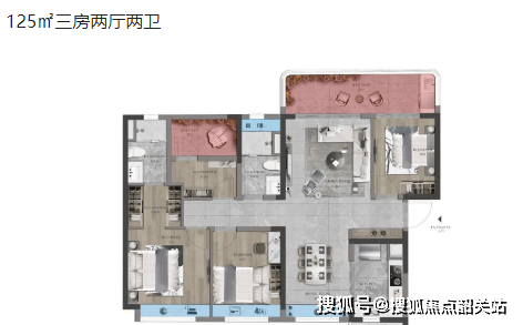 125㎡三房两厅两卫:宽敞明亮,空间利用率高。