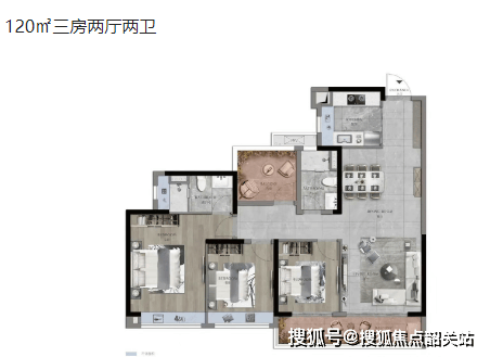 105㎡三房两厅两卫:适合小家庭居住,布局合理,功能齐全。