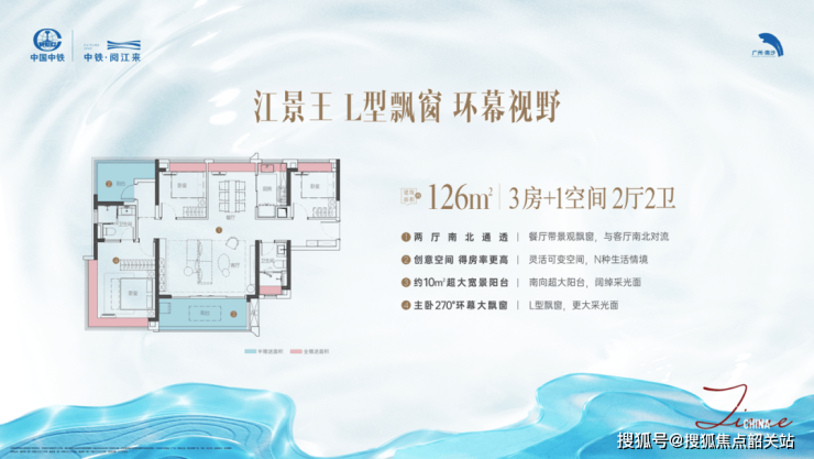 100㎡三房:南北通透,主卧270°转角飘窗,直面珠江;