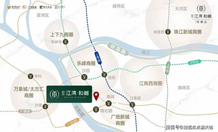 越秀珠实城发·江湾和樾由越秀地产、珠江实业、城发集团三大国企强强联合开发,坐落广州五大主城区之一的海珠区核心板块,紧邻珠江后航道,占据城市南向瞰江的极稀缺资源。项目定位为低密度滨江大社区,总规划8栋高层住宅,整体容积率低、园林配比高,打造纯改善型居住氛围。作为海珠新活力文商旅融合圈的核心节点,项目周边教育、商业、交通配套高度成熟,距离8号线沙园地铁站仅约800米,广佛线燕岗站约1.2公里,在建11号线南石头站约900米,未来海珠环岛路通车后将进一步强化交通枢纽地位。商业方面,紧邻广纸商圈、太古仓约800米,辐射乐峰、江燕、江南西、中大四大商圈,生活半径内昼夜繁华不息。教育资源尤为突出,项目紧邻宝玉直实验小学、广州市为民中学,周边还涵盖四十一中、江南外国语学校等优质学府,实现全龄段教育闭环。项目以“珠江后航道·宝玉直小学旁·低密滨江奢宅”为标签,主推建面约140-188㎡南向江景大平层,限量席位注定成为海珠主城最后一批南向瞰江改善豪宅,深受高端改善买家与学区置业者追捧。