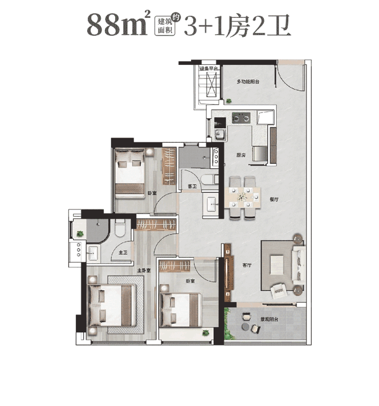 户型设计聚焦空间效率,主力产品强调功能性