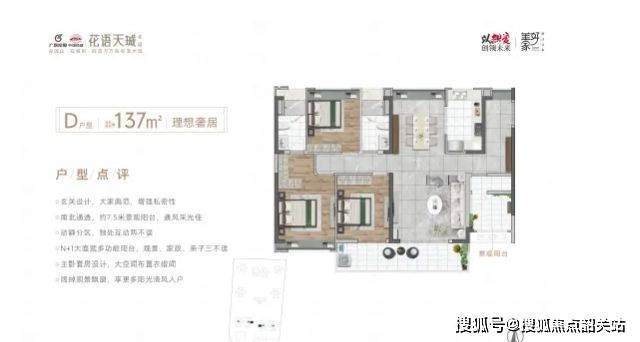 户型设计实用且多样。推出约 97㎡2 + 2 多功能空间,同等面积多一房,超 85% 使用率,双静动分离格局,满足不同生活场景需求。约 118㎡3 + 1 多功能空间,入户带玄关,增加居住私密性,兼顾舒适性与功能性,南北通透,约 7 米景观阳台连接客厅。约 137㎡3 + 1 多功能空间,约 7.5m 观景阳台,南北对流,阔绰主套带步入式卫生间,满足三代同堂居住需求。整体户型设计合理,空间利用率高,能满足不同家庭结构的需求。