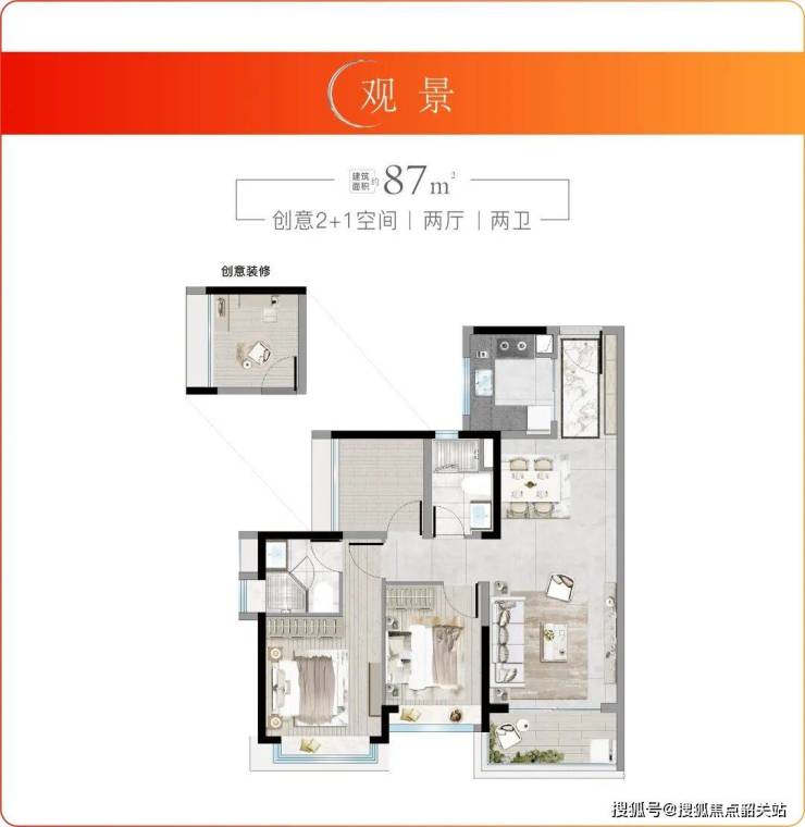 户型面积:最后一栋住宅压轴巨献约87-119㎡三至四房;高定小户约41-53㎡