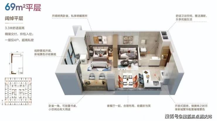 项目由1栋天际公寓及1栋地标住宅和裙楼商业组成。
