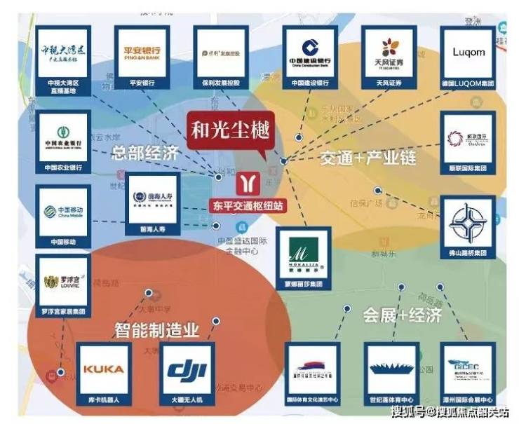 【500强企业总部聚集】项目周边超20多家大型企业聚集,如中国移动总部、中国建设银行总部、佛山电视台、梦娜丽莎集团、顺联国际集团等,包含多家世界500强企业总部。