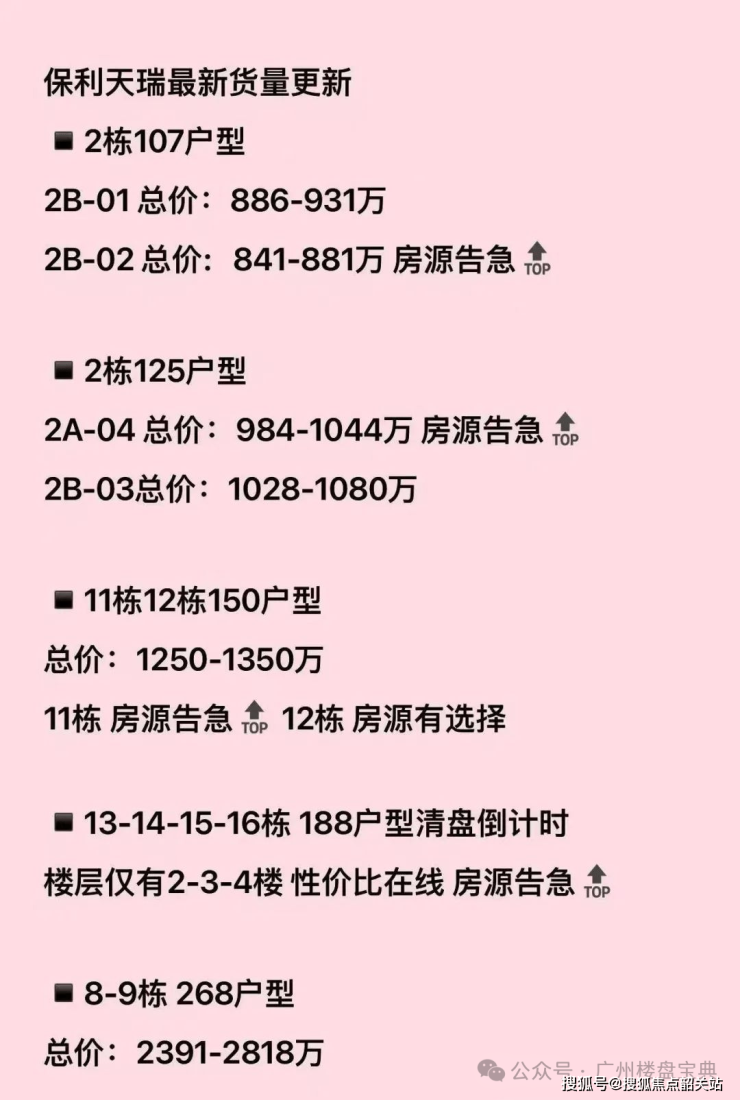 以上就是保利天瑞的在售的房源以及价格一览,不同的楼层会有不同的价格,以上的价格也没有到最终的成交价,只是在售的价格区间给大家参考。