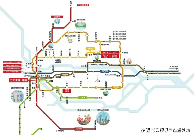 对于任何一处居所而言,交通的便捷性都是衡量其价值的关键维度。臻园在这方面拥有显著优势。项目毗邻规划中的花地湾TOD综合交通枢纽,这里是地铁1号线与规划中的25号线的交汇换乘点。从社区出发,步行约800米(约12分钟路程)即可抵达现有的地铁1号线花地湾站。更为重要的是,仅需乘坐1站地铁即可到达芳村TOD枢纽,在此可以无缝换乘被誉为“换乘之王”的11号线以及22号线。11号线作为广州地铁线网的“大动脉”,其32个站点中有26个是换乘站,这意味着从臻园出发,可以极为方便地通达广州的各个核心区域。