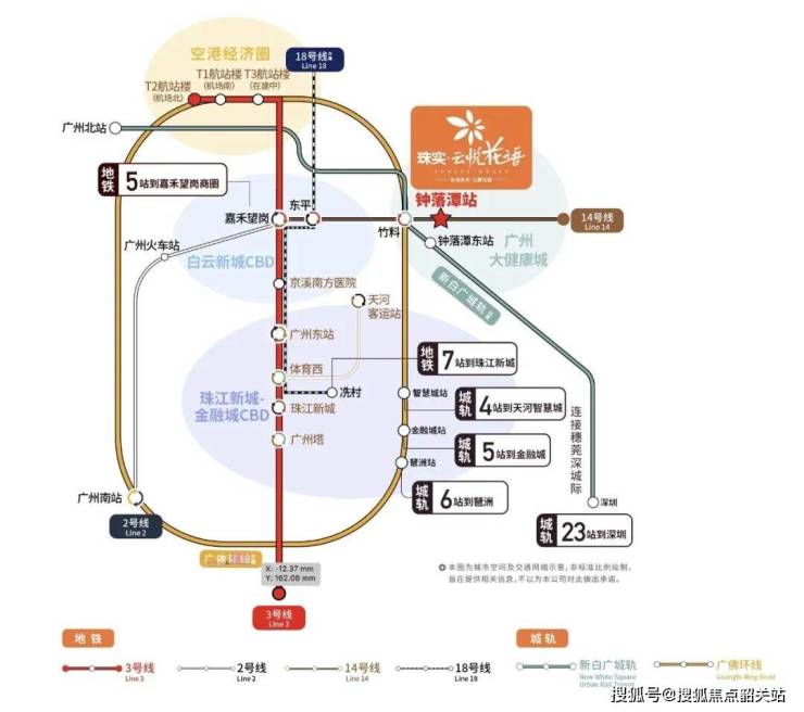珠实·云悦花语紧邻地铁14号线钟落潭站,步行仅需5分钟,即可快速通达嘉禾望岗换乘2号、3号线,畅达白云新城、体育西路及珠江新城。未来14号线二期直连嘉禾望岗、全国时速最快的18号线北延线通达珠江新城,通勤更高效便捷。