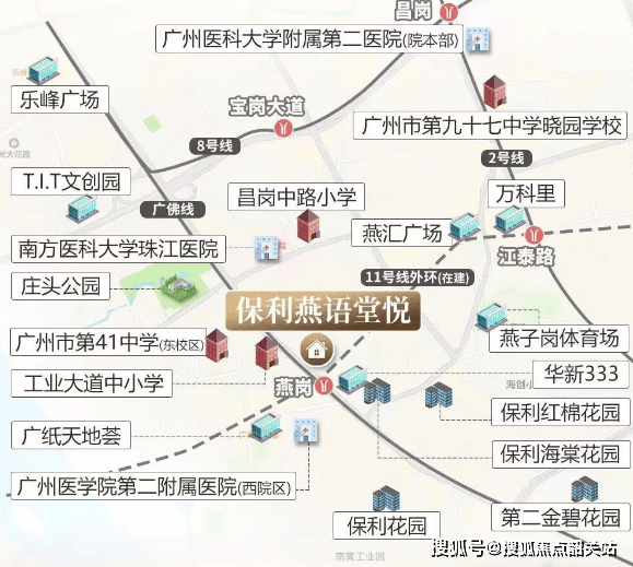 双地铁交汇:项目靠近广佛线与11号线大环线的交汇点——燕岗地铁站,通过这两条线路,居民可以快速到达广州各个核心区域,如琶洲、天河等。