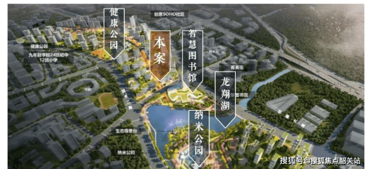 项目坐拥一湖双园顶级生态资源,是知识城罕见的城芯湖居住区。南侧紧邻龙翔湖,为知识城三大湖景公园之一,规划约 30 万㎡生态水域,打造环湖绿道、亲水平台、景观广场,四季景色宜人,是日常休闲、散步、健身的好去处。步行 5 分钟可达13 万㎡纳米公园与2 万㎡健康公园,双公园配套生态景观台、活力漫道、野餐草坪、活力球场、儿童游乐区等设施,满足全龄段休闲需求。